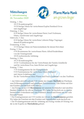 Dienstag, Mittwoch und Freitag von 8:30 - 11.30 Uhr