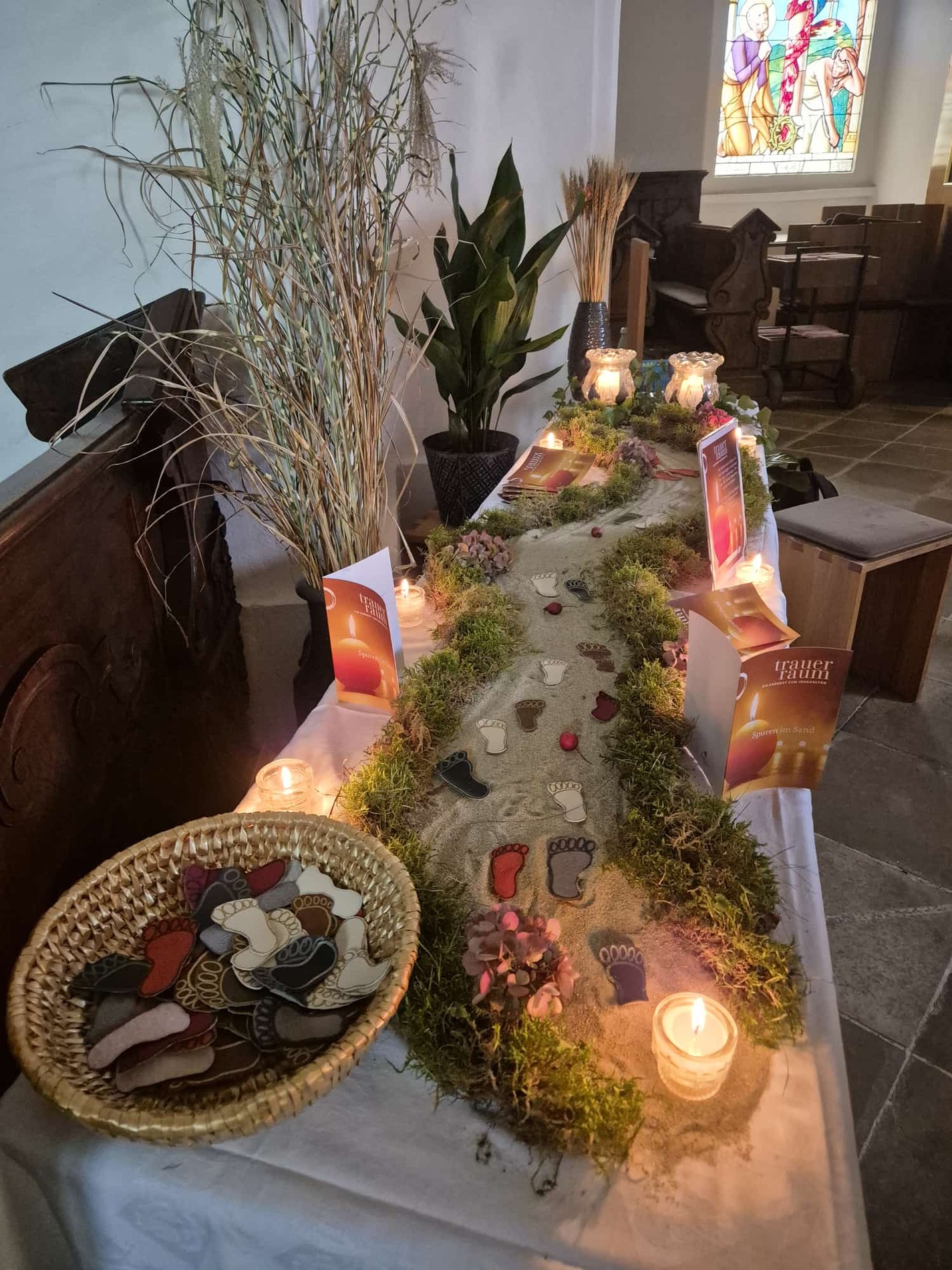 Auch für Kinder gab es die Möglichkeit, der Trauer über einen lieben Verstorbenen Ausdruck zu verleihen. Insgesamt haben 230 Besucherinnen und Besucher den Trauerraum besucht. Den Organisatorinnen und Organisatoren sowie allen Helferinnen und Helfern sei an dieser Stelle für diesen schönen Trauerraum und ihr ehrenamtliches Engagement gedankt!