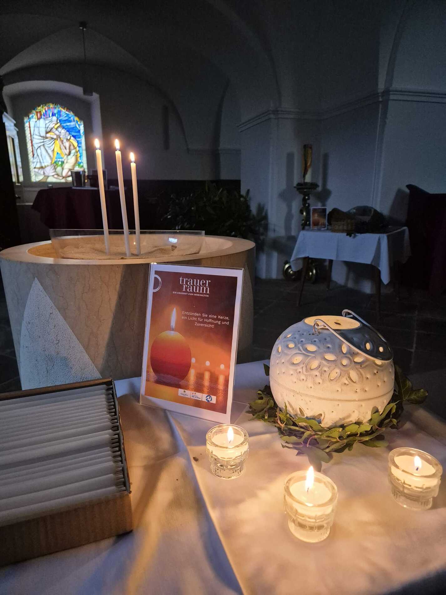 Bei diesen Trauerraum wurden die Besucherinnen und Besucher anhand mehrerer Stationen dazu angeregt, inne zu halten und der Trauer Raum und Zeit zu geben.