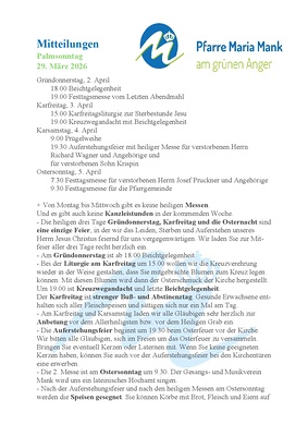Mitteilungen der Woche - 4. Fastensonntag, 10. März 2024