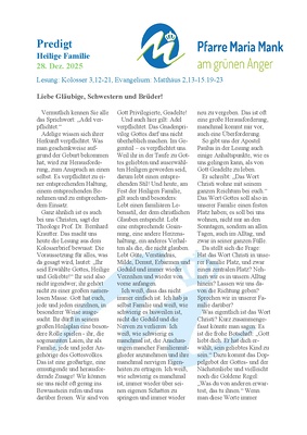 Sonntagspredigt - 2. Sonntag im Jahreskreis 2024