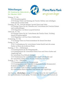 Mitteilungen der Woche - 30. Sonntag im Jahreskreis 2025