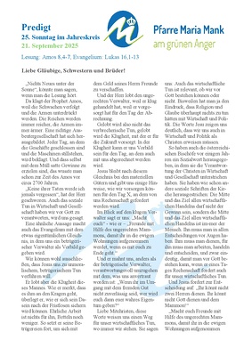 Sonntagspredigt - 25. Sonntag im Jahreskreis 2025