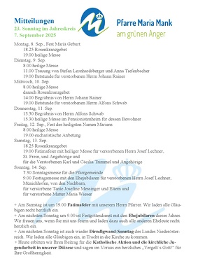 Mitteilungen der Woche - 23. Sonntag im Jahreskreis 2025