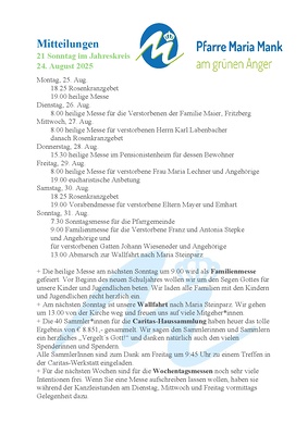 Mitteilungen der Woche - 21. Sonntag im Jahreskreis 2025