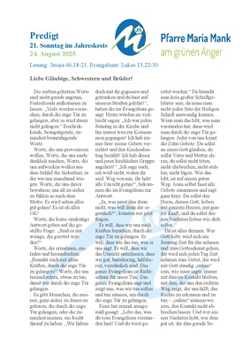 Sonntagspredigt - 21. Sonntag im Jahreskreis 2025