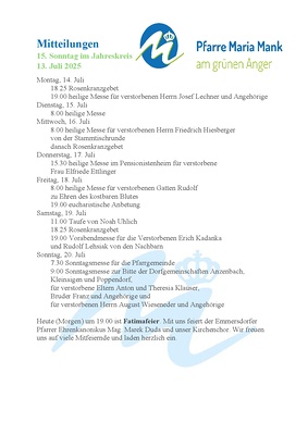 Mitteilungen der Woche - 15. Sonntag im Jahreskreis 2025