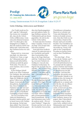 Sonntagspredigt - 15. Sonntag im Jahreskreis 2025
