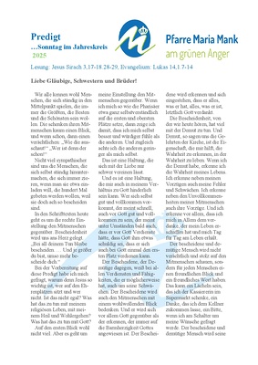Sonntagspredigt - 22. Sonntag im Jahreskreis 2025