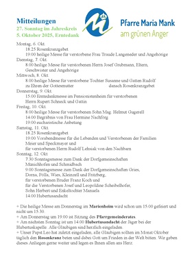 Mitteilungen der Woche - 27. Sonntag im Jahreskreis 2025
