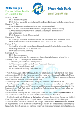 Mitteilungen der Woche - Fest der Heiligen Familie