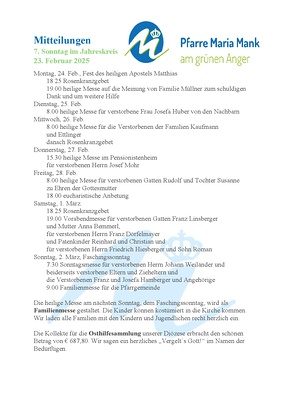 Mitteilungen der Woche - 7. Sonntag im Jahreskreis 2025