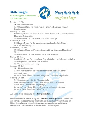 Mitteilungen der Woche - 6. Sonntag im Jahreskreis 2025