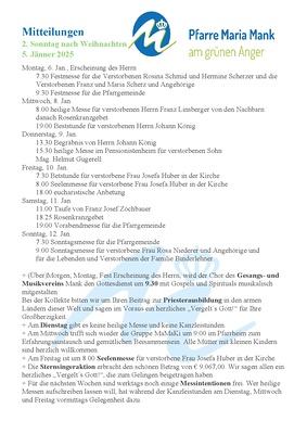 Mitteilungen der Woche - 2. Sonntag nach Weihnachten 2025