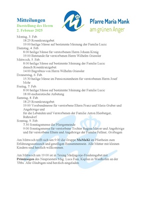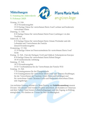 Mitteilungen der Woche - 4. Sonntag im Jahreskreis 2025