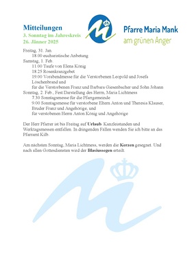 Mitteilungen der Woche - 3. Sonntag im Jahreskreis 2025