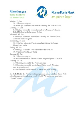 Mitteilungen der Woche - Taufe des Herrn 2025