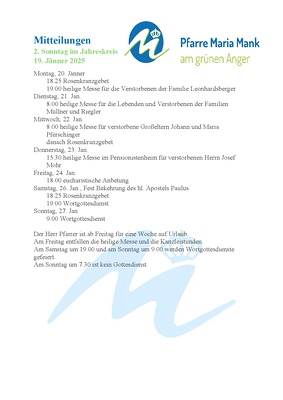 Mitteilungen der Woche - 2. Sonntag im Jahreskreis 2025