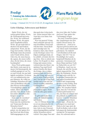 Sonntagspredigt - 7. Sonntag im Jahreskreis 2025